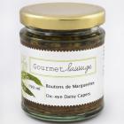 Quoi de mieux pour marier la saveur d'un saumon fumé ou d'une salade d'été que la câpre? Écrasée avec quelques gousses d'ail elle fait une tapenade délicieuse. Avec un filet d'huile d'olive elle fait une vinaigrette divine. La câpre, produit méditerranéen si savoureux, ne se cultive malheureusement pas chez nous. Mais heureusement, l'entreprise Québécoise Gourmet Sauvage pousse l'expérience des produits du terroir à son apogée en vous proposant une alternative Laurentienne aux câpres: les boutons de marguerites. Elles sont cueillies à la main dans les forêts de notre belle province et sont marinées dans des ingrédients naturels.