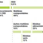 Je me rappelle lorsque j’ai déménagé à Sherbrooke et que j’ai commencé à récupérer les résidus organiques de la cuisine pour les inclure au bac de compostage collecté par la ville. J’étais vraiment impressionnée de constater à quel point il y avait maintenant peu de choses à ajouter dans le sac de matières résiduelles ! En effet, environ 40 % des déchets produits par un ménage canadien peuvent être compostés1. Voici à gauche un aperçu de la composition des matières résiduelles au Québec entre 2006 et 20092 (CRD = résidus du secteur de la construction, rénovation et démolition; RDD = résidus domestiques dangereux).